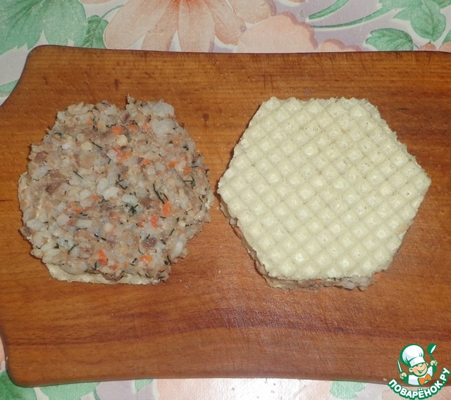 Обжаренные вафли складываем в сковороду и накрываем крышкой. Пропариваем 5-7 минут на самом медленном огне.