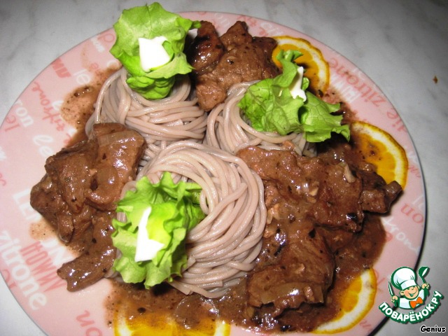 Вот и все. Наше мяско готово! Я подавала с гречневой лапшой - о-о-очень вкусное сочетание!