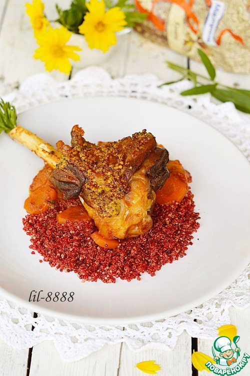 | Нежное мясо в ароматном соусе. Отличным дополнением к мясу будет свекольное киноа. |