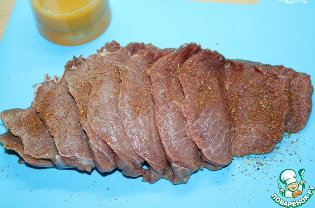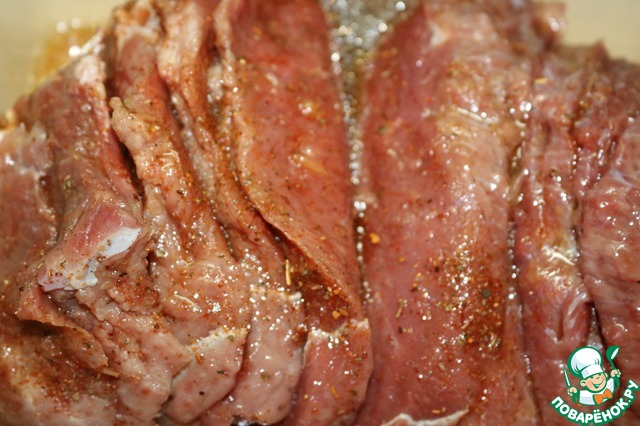 Мясо хорошо посолим, поперчим.