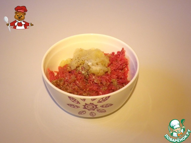 2. Пропустите через мясорубку с мелкой решёткой подготовленные ингредиенты.