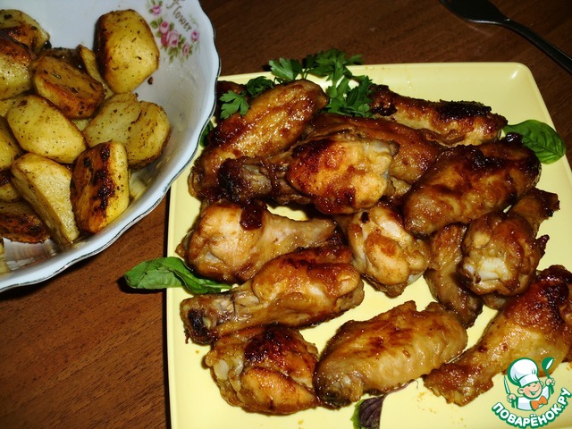 | Долго искали идеальный рецепт приготовления куриных крылышек. Этот придумали сами. Может и есть похожие рецепты, но этот мы с мужем можем назвать своим)) Крылышки отлично подойдут и как основное блюдо, и как закуска, к пиву например:) Мягкие, ароматные, румяные - если вы любите крылышки, эти по этому рецепту вы точно будете готовить часто!)) |