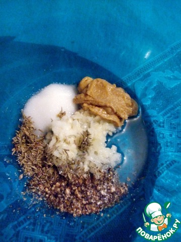 Туда же добавляем, горчицу, тимьян, соль, перец.