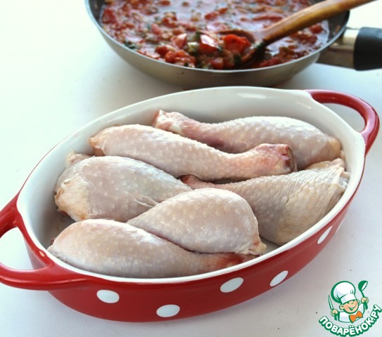 Выложить куриные голени в жаропрочную форму.
