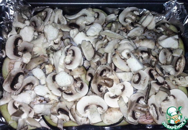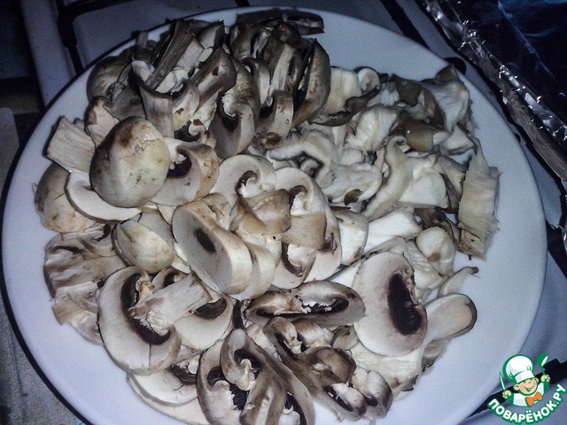 Шампиньоны дольками. Вешанки произвольно. В принципе можно брать только один сорт грибов.