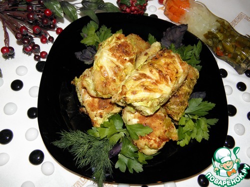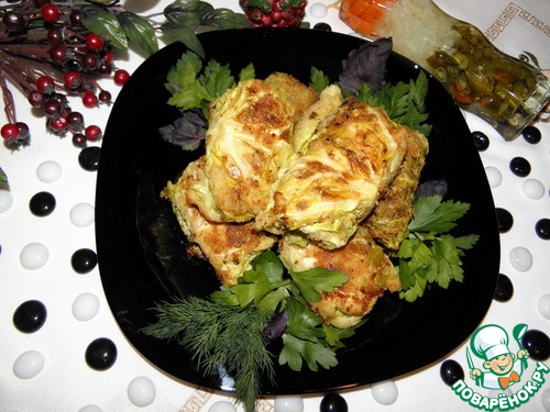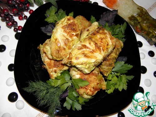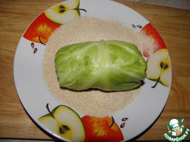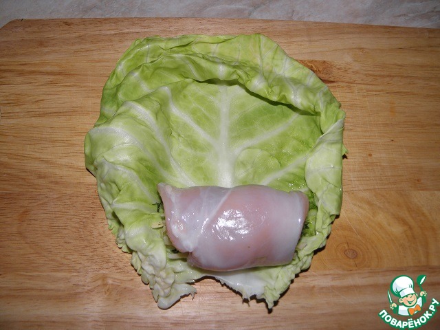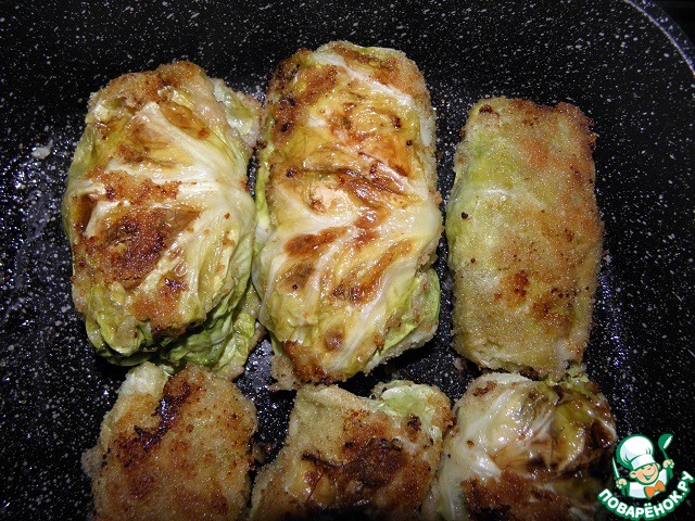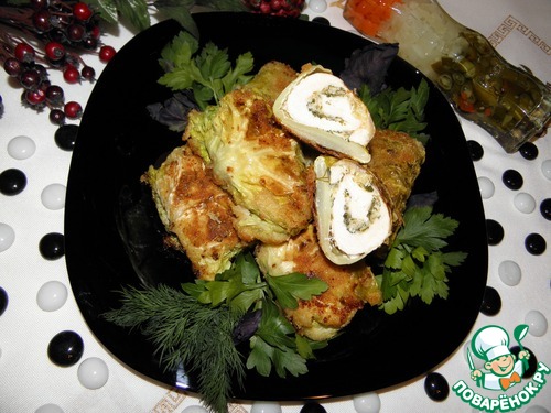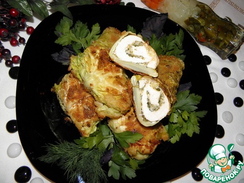 Затем каждый рулетик завернуть в подготовленный капустный лист.