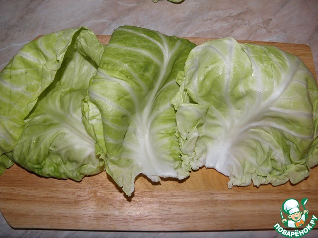 Капустные листья подготовить как на голубцы, можно отварить 2-3минуты, я подготавливаю капусту в микроволновке.
