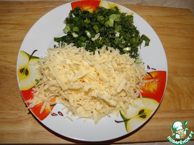 Лук и укроп мелко нарезать, сыр натереть на терке, все хорошо перемешать.