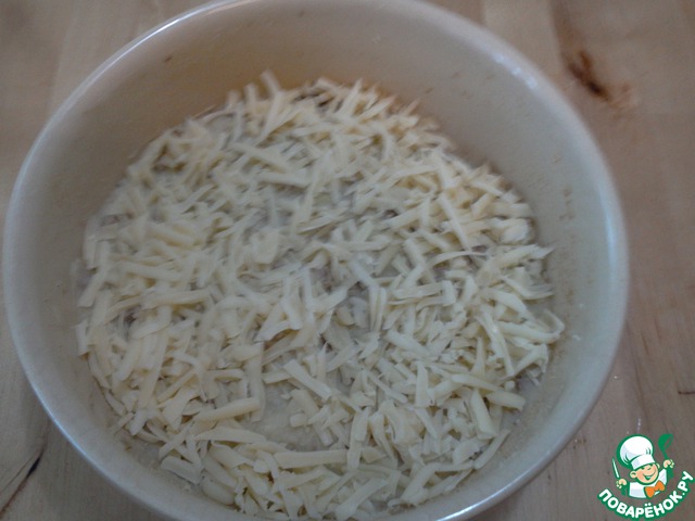 ... и, наконец, тертый сыр! Отправляем в духовку, разогретую до 200 градусов, на 15 минут.