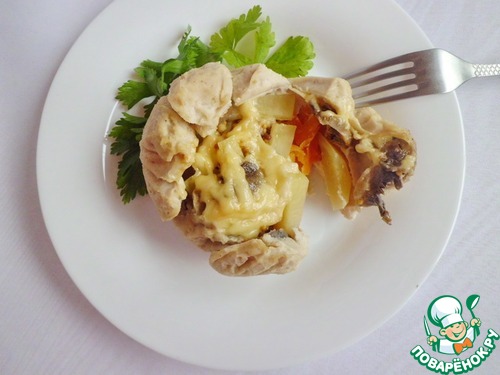 Отправляем в разогретую до 150* духовку на 50 минут (за 10 минут до окончания, мешочки можно приоткрыть, что бы подрумянился верхний слой).