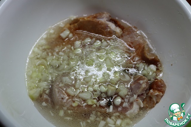 Мясо погрузить в маринад. И оставить мариноваться как минимум на 2 часа, а ещё лучше на ночь.