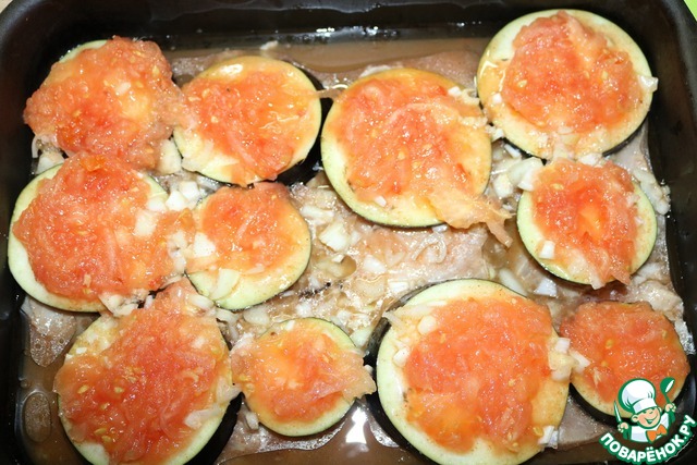 Сверху на баклажаны отправляем наш томатный сок с мякотью. И отправляем в разогретую духовку до 200 градусов на 1 час.