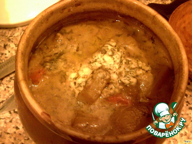 | Стародавний рецепт русской национальной кухни. На оригинальность не претендует т. к. я его немного изменил. Отличная альтернатива приевшемуся, наверняка всем, обычному жаркому. Это гораздо вкуснее. |