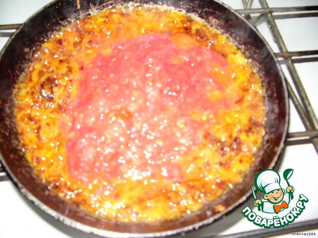 Кладём в мясо 2 ст.ложки томатной пасты и посыпаем ещё раз итальянскими травами. Накрываем крышкой и тушим ешё минут 15-20.