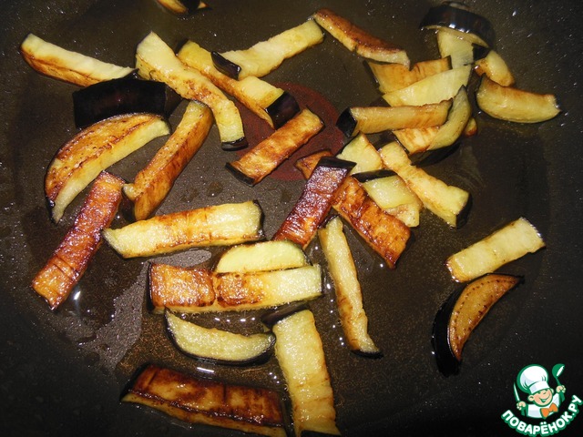 С баклажана слить выделившуюся жидкость и пожарить в подсолнечном масле.
