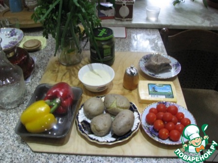 | Идею почерпнула в Одноклассниках, внесла дополнительный ингредиент печеные сладкие перцы, и кинзу, для пикантности и аромата. Заправила приготовленным домашним майонезом, на перепелиных яйцах. Главные дегустаторы (муж и взрослые сыновья), оценили и одобрили мою публикацию. Для своих, буду делать и в дальнейшем, только печеных желтых перцев увеличу до двух, для большего разноцветия. Я дважды была в Болгарии, и обратила внимание, что болгары очень много готовят с печеными перцами. Да и для желудка печеные перцы (на мой взгляд), более подходят. Их можно использовать не только в овощных салатах, но и в составе других блюд. Можно просто испечь перцы разных цветов, выложить веером, меняя цвета, сделать так называемый "павлиный хвост", сбрызнуть бальзамическим уксусом, посыпать петрушечкой в смеси с кинзой, мелко рубленным чесночком, или рубленными листиками черемши, несколько капель хорошего маслица, это будет "Песня"! Пикантно! Вкусно! Красиво и Полезно! Полет фантазии при подаче, не ограничен, но преимущественное право остается за сыром "Фета"! Вот такая хвалебная Ода печеным сладким перцам. А сегодня такой полу-зимний, полу-весенний салат. Может кому-то и приглянется?. |