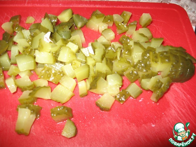 | Классический рецепт, наверное ничего нового вы не увидите в нем, но вот вместо горошка я решила добавить черную фасоль - и салат заиграл новыми красками! |