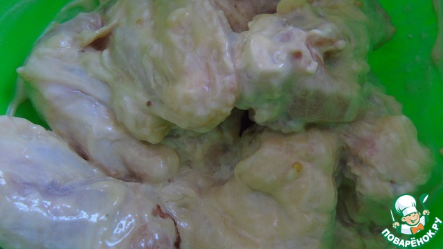 Горчицу смешать с крахмалом и влить свежевыжатый яблочный сок, подогреть до загустения, так лучше соус обволакивает крылья. Остудить. Влить уочестерский и соевый соус. Перемешать и тщательно намазать соусом крылья. Оставить мариноваться на 2 часа.