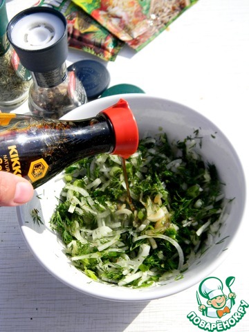Залить всю смесь соевым соусом.