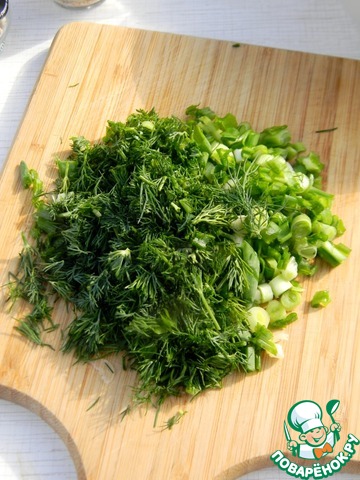 Зелень (у меня лук и укроп) мелко порубить.