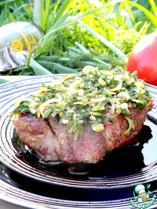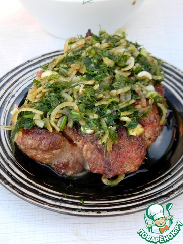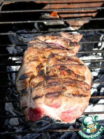 | Существует мнение, что лучшие повара — мужчины. Может быть! Возможно, готовить мясо лучше получается у людей этого пола. Но я хотела немного опротестовать это мнение и приготовить мясо для своего мужчины без его помощи, и чтобы он оценил по достоинству. А мясо я готовила не просто на сковороде, а на собственноручно разожжённом мангале, что опять же доказывает, что и здесь женщина не беспомощна. Приступая к рецепту, вспомнила ещё один совет по приготовлению мяса, что солить его либо совсем не надо, либо перед самым приготовлением. Так оно остается сочным и нежным. Зная, что мой муж не принимает такое мнение и несоленое мясо есть не будет, я решила подать его с сочным и ароматным "салатом" из лука, зелени и соевого соуса. Мясо я пожарила большим куском на открытом огне, по-настоящему так, по-мужски. Уважаемые дамы, не бойтесь экспериментировать и делать вроде как невозможные вещи. Уверяю, ваш мужчина (супруг, отец, друг или коллега) будет приятно удивлен и немножко поражен, что вы сделали это сами. Плюс высоко будет оценен такой знак внимания. В этом рецепте я опишу поэтапно, что я делала и свои ощущения. Мой муж "пищал" от удовольствия, ему я угодила на все сто. Вам интересно? Прошу в рецепт))). |