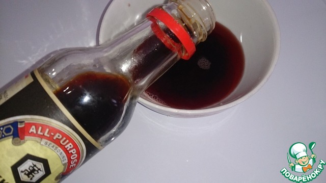 Добавить к мясу гранатовый сок, оливковое масло и соевый соус.