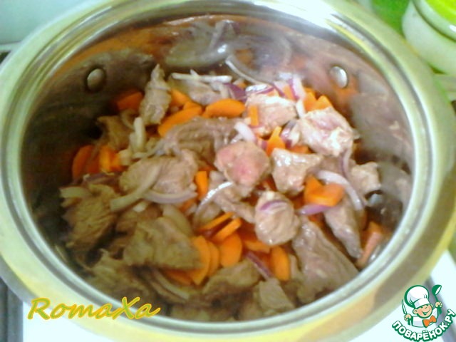 Мясо слегка обжариваем, я это делал в кастрюле с толстым дном, в которой потом продолжил приготовление