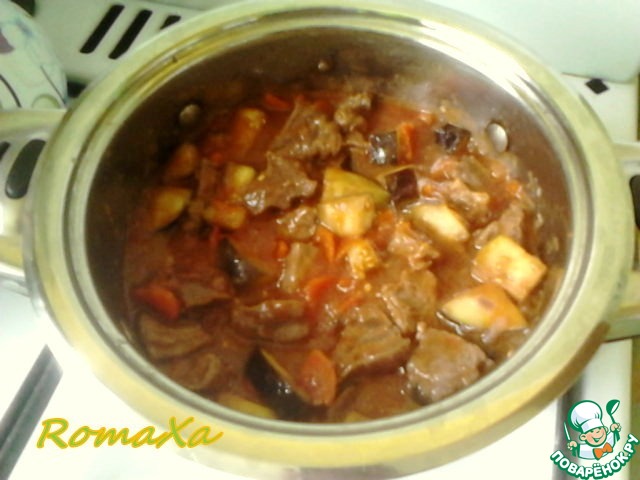 Перемешиваем и тушим, пока мясо не станет мягким, всё зависит от того, какую часть говядины вы взяли. Я готовил из толстого края и у меня это заняло порядка 30 минут