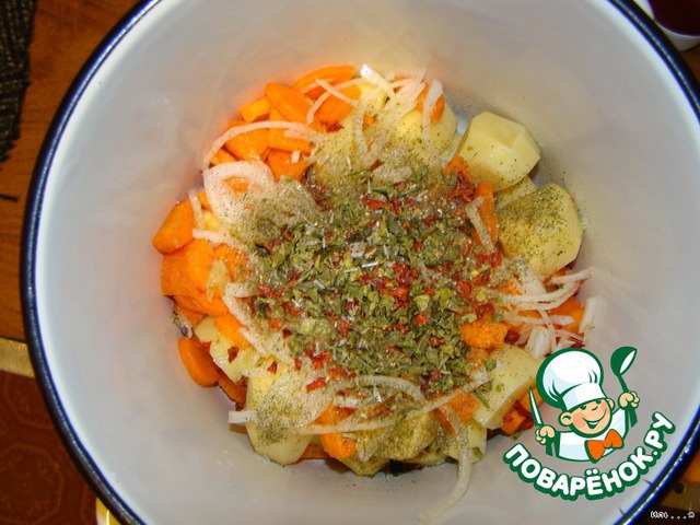 | Лично для меня вся новизна этого рецепта состояла в том, что накануне мне подарили замечательные специи привезенные прям с гор кавказского региона... они настолько ароматны, что пока лежали в шкафу - вся кухня пропахла ими. Вдохновленный, просто удивительно аппетитным ароматом специи "Чаман", я и приготовил сие блюдо! Принимайте, уважаемые Поварята! |
