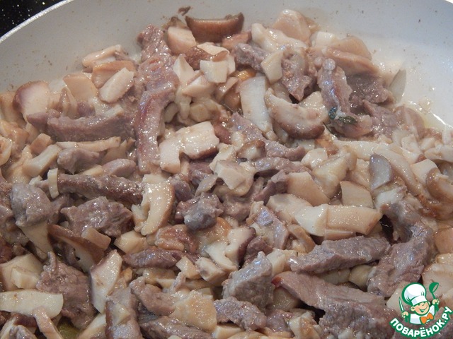Добавляем нарезанные грибы и обжариваем еще 7-8 минут.