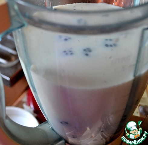 В чашу блендера наливаем молоко, кладем хлопья, орехи, сахар и ежевику. Взбиваем.