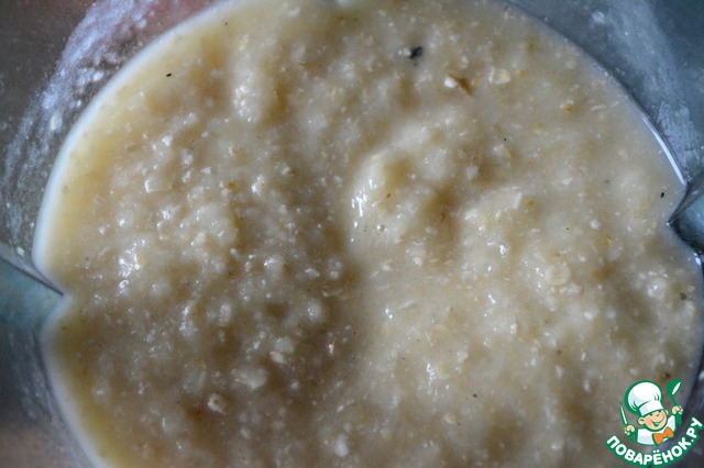 Кладем в блендер фрукты, овсяные хлопья. Мы используем хлопья от Мистраль