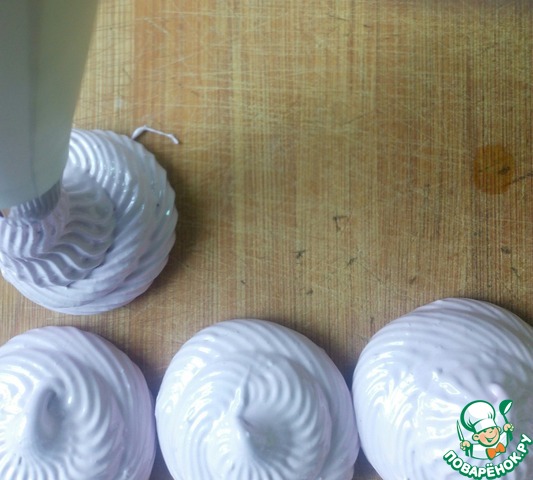 Параллельно взбиваем охлажденные белки до пиков, а затем вливаем лимонный сок, а потом сироп.