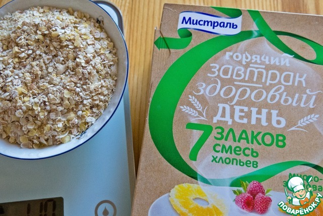 Я буду использовать смесь хлопьев "7 злаков" от ТМ "Мистраль". Отмеряем нужное количество и