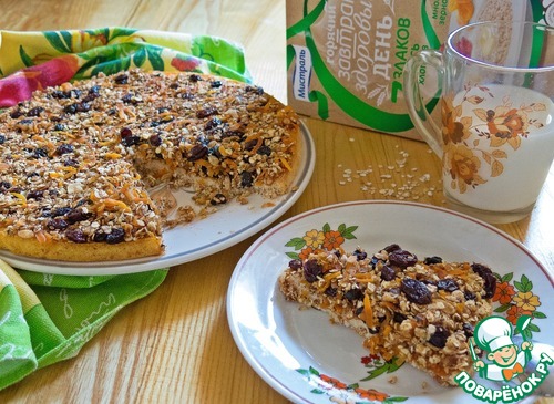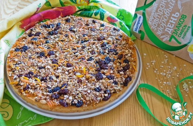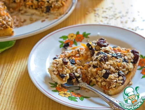| Попробуйте подать вкусные и полезные, изюмно-морковные мюсли с медом, на тоненьком бисквите. Для большей пользы, мы будем использовать смесь хлопьев "7 злаков". Думаю, довольны будут все, включая вас! И кстати, эти мюсли - очень вкусны сами по себе! Заходите, угощайтесь! Мюслевый пирог! |