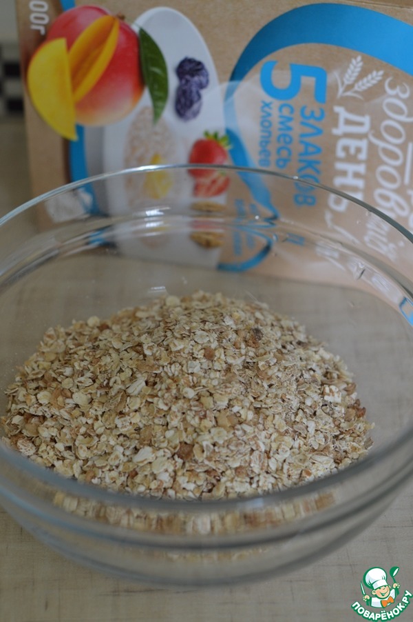 1. Духовку разогреть до 170С. Хлопья всыпать в чашку.