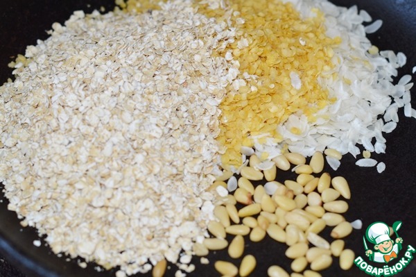 4. В хлопья добавить орехи и цукаты. Крупные орехи можно слегка измельчить.