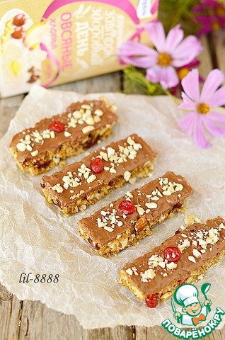 | Предлагаю приготовить батончики из смеси хлопьев Мистраль без сахара и меда. Орехи и цукаты можно использовать по своему вкусу. Изюи можно заменить курагой или черносливом. Батончики получаются более мягкие. но все равно держат форму. А покрывать их шоколадом-это уже дело вкуса. |
