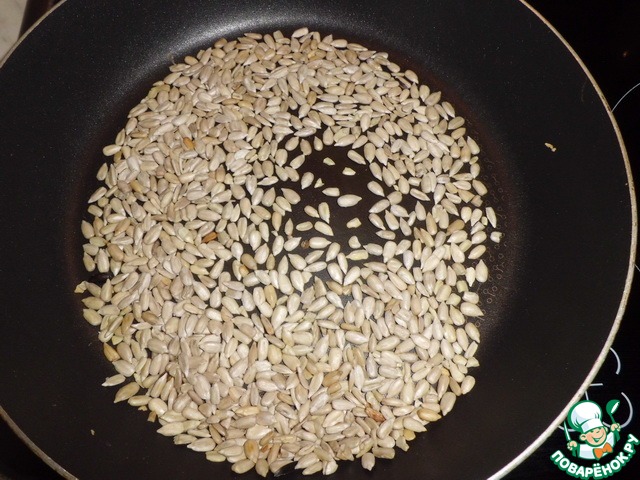 На этой же сковороде (можно параллельно) обжариваем семечки.