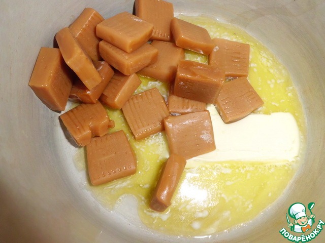 Оставшееся сливочное масло отправляем в кастрюльку вместе с ирисками (не помню их вес, проще было посчитать))) Расплавляем.