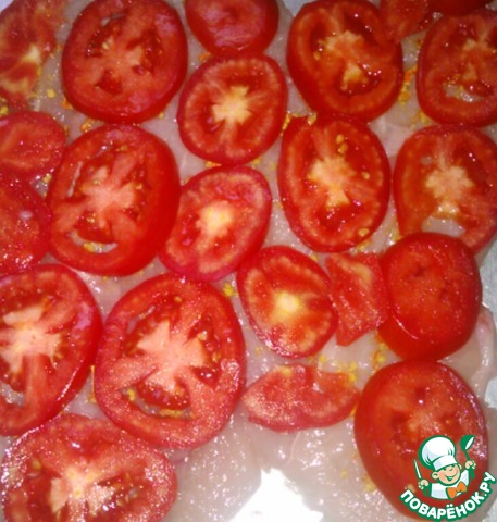 Филе разрезать и отбить. выложить в форму посолить поперчить