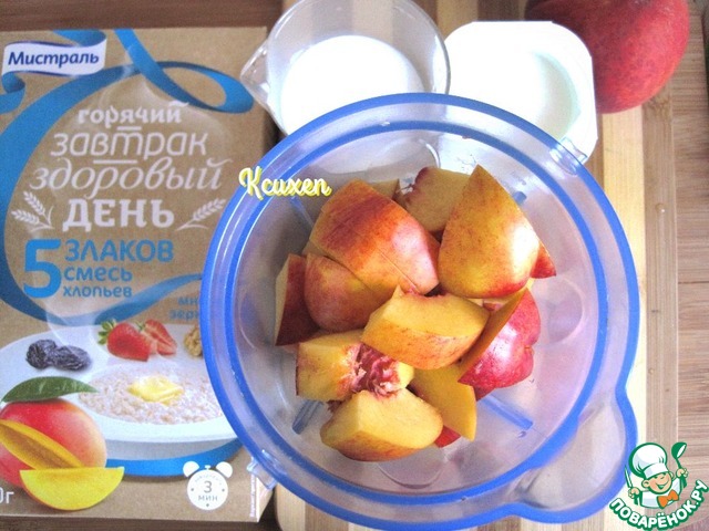 И снова всё быстро и просто! Для смузи: из персиков извлекаем косточку, нарезаем персики на произвольные кусочки.