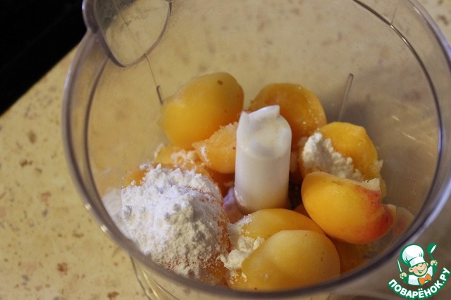 Абрикосы сложить в блендер, добавить сахарную пудру и измельчить до однородного состояния.
