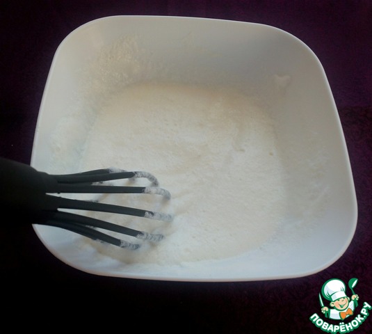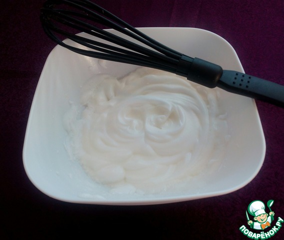 Белки взбить в крепкую пену.