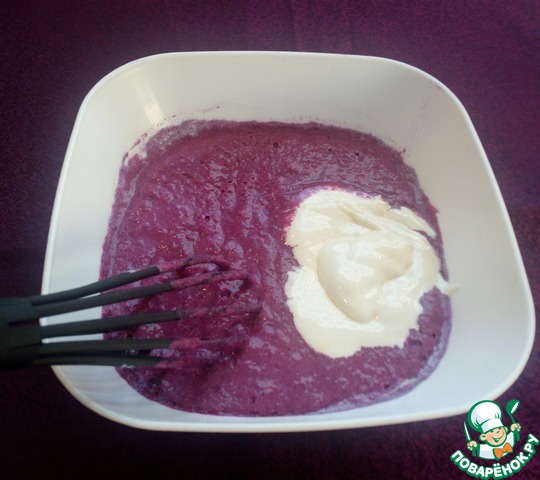 Желтковый крем кладем в белково-ягодную массу.