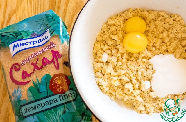 Добавляем желтки и сметану.