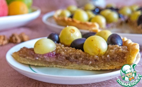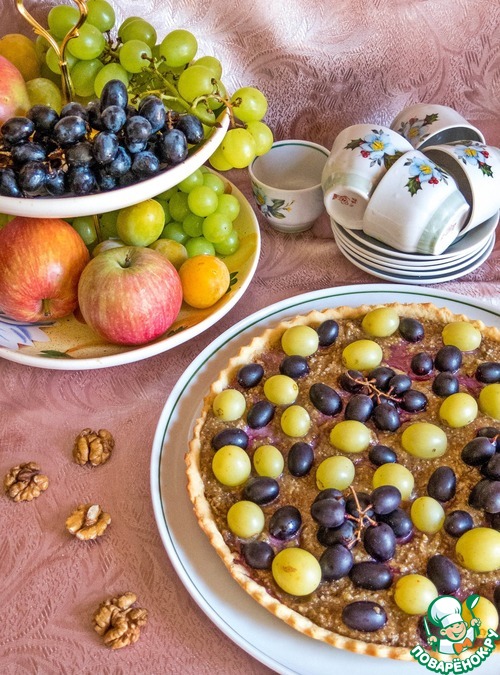 | Ртвели - это грузинский праздник виноградной лозы и сбора винограда. На 2-3 дня собирается вся семья, съезжаются родственники, друзья и собирают виноград. Делают из него сок, вино, пироги и всяческие угощения. По вечерам, конечно, дружное застолье: столы ломятся от горячих блюд, выпечки и виноградного вина! Вот и я, с помощью своего рецепта, попытаюсь передать атмосферу этого праздника! Также, в начале сентября, начинается сбор урожая грецких орехов! Поэтому, в моем Тарте "Ртвели", главными героями будут - виноград и грецкие орехи! Готовится тарт очень быстро, больше рассказывать. Угощайтесь! |