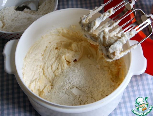 У меня более пролетарский способ замеса: сложить в глубокую миску мягкий (это очень важно! см. на фото!!!) творог (кварк), добавить яйцо, сахар, щепотку соли, растительное масло без запаха. Отдельно просеять муку, смешать с разрыхлителем.