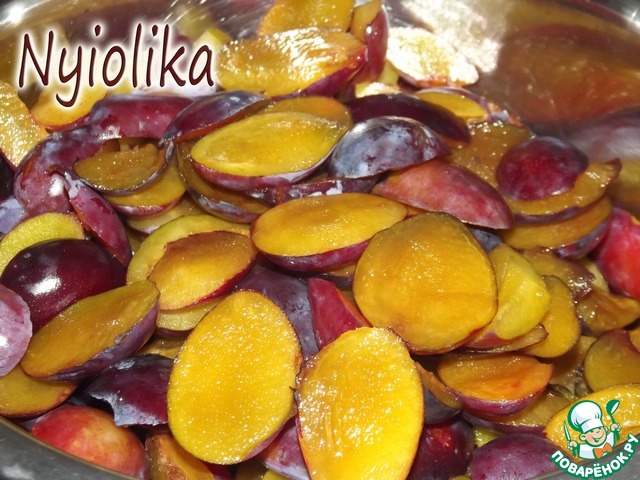 Сливу промыть. Очистить от косточек, разрезая на половинки. Засыпать сахаром и дать постоять, чтобы выпустился cок.