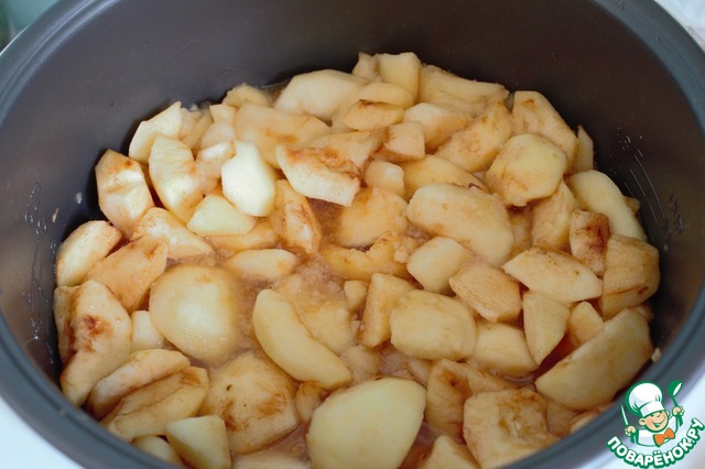 В чаше мультиварки, на режиме "варка на пару" довести яблочный сок до кипения, затем переключить на режим "выпечка" и варить до уменьшения объема жидкости примерно на 1/4.